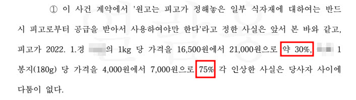 내용을 살짝 들여다보면, 심지어 일부 품목은 인상폭이 75%나 되기도 했는데요. 점주님께선 간절히 해지를 원했지만 당연히 본사는 거절했고, 이런 상황 속에서 남은 계약기간은 너무 길다 보니 이를 해결할 수 있는 방법을 찾게 된 것이지요.