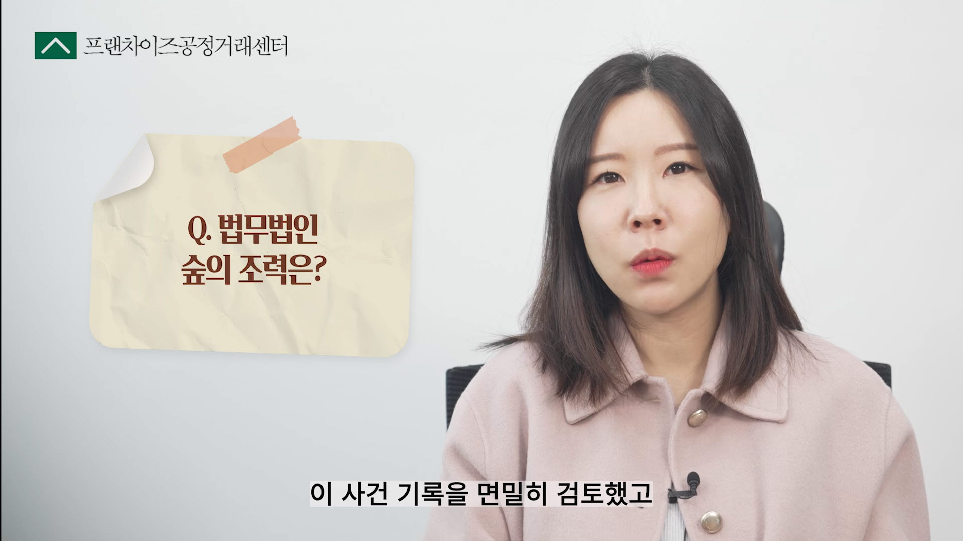 안녕하세요, 프랜차이즈 전문 법무법인 숲 송윤 변호사·가맹거래사 입니다.