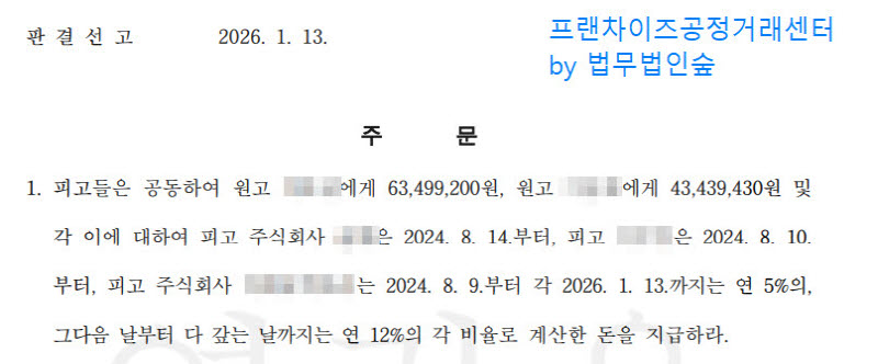 법원은 본사와 대표, 그리고 영업을 양수한 새로운 회사까지 모두 공동으로 원고들에게 손해를 배상하라고 판결했습니다.
